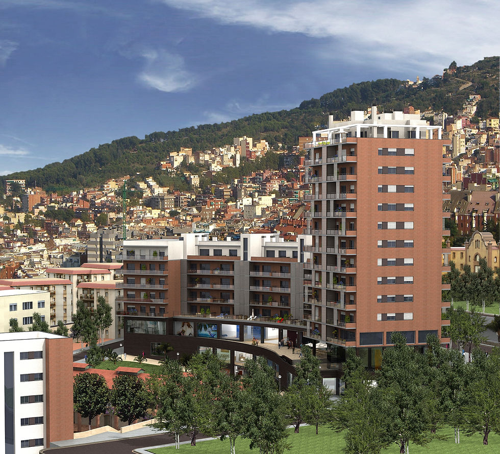 La Taxonera is a mixed use project involving a residential tower, offices on the first floor and a shopping mall on the ground floor and underlying levels. In the middle of the site is an old factory which was retained to keep the collective memory of the site alive.